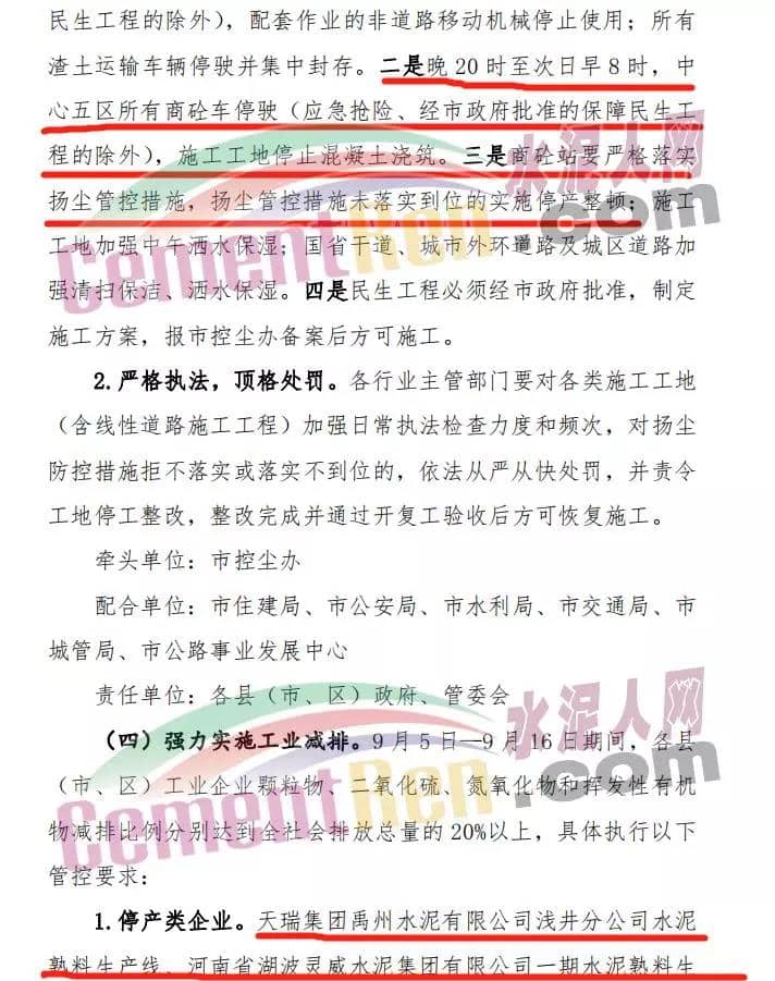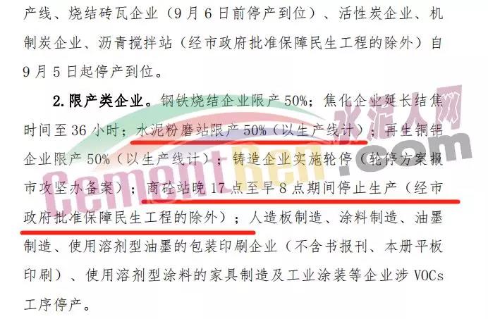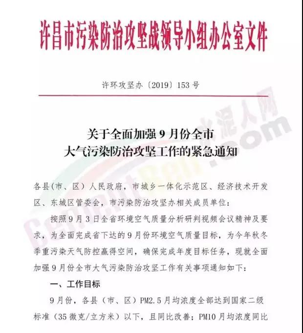 與此同時(shí),許昌市污染防治攻堅(jiān)戰(zhàn)領(lǐng)導(dǎo)小組發(fā)布關(guān)于全面加強(qiáng)9月份全市大氣污染防治攻堅(jiān)工作的緊急通知,通過對(duì)水泥企業(yè)、商砼企業(yè)的停限產(chǎn)有了明確的規(guī)定。部分內(nèi)容如下:
