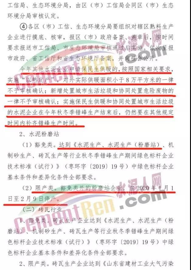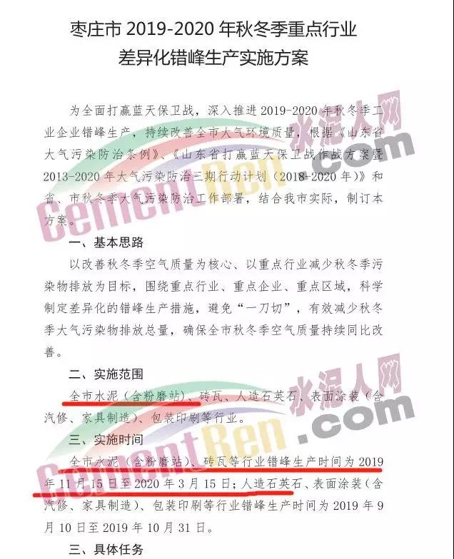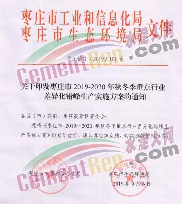 與此同時(shí),水泥大省山東省棗莊市工業(yè)和信息化局、棗莊市生態(tài)環(huán)境局發(fā)布《關(guān)于棗莊市2019~2020年秋冬季重點(diǎn)行業(yè)差異化錯(cuò)峰生產(chǎn)實(shí)施方案的通知》稱,為全面打贏藍(lán)天保衛(wèi)戰(zhàn),深入推進(jìn)2019~2020年秋冬季工業(yè)企業(yè)錯(cuò)峰生產(chǎn),持續(xù)改善全市大氣環(huán)境質(zhì)量,根據(jù)《山東省大氣污染防治條例》、《山東省打贏藍(lán)天保衛(wèi)戰(zhàn)作戰(zhàn)方案暨2013~2020年大氣污染防治三期行動(dòng)計(jì)劃(2018~2020年)》和省、市秋冬季大氣污染防治工作部署,結(jié)合我市實(shí)際,制定本方案。