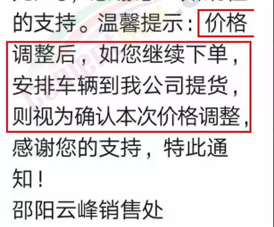 友情提醒:價(jià)格調(diào)整后,如繼續(xù)安排車輛到我司提貨,視為確認(rèn)此次價(jià)格調(diào)整。順祝商祺!