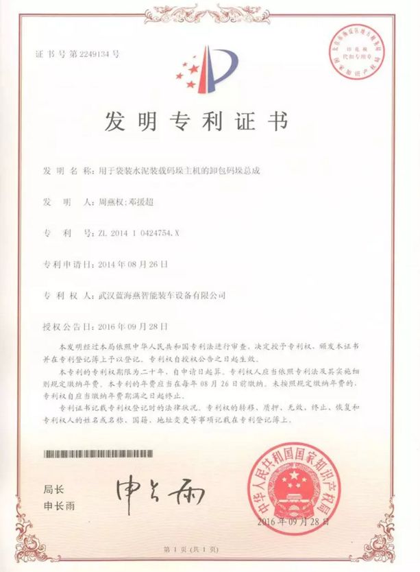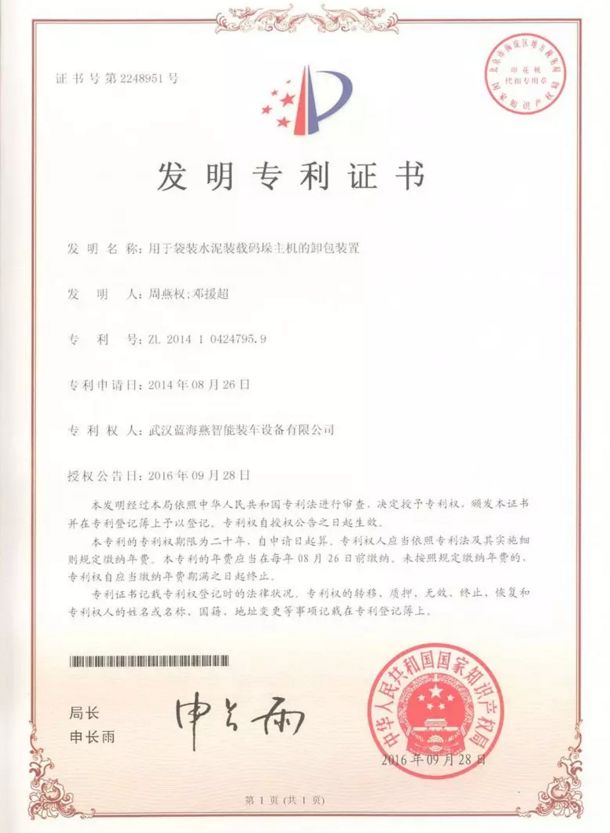 據(jù)武漢藍海燕周總介紹:智能裝車是武漢藍海燕團隊歷經五年時間,自主研發(fā)集機、電、視覺于一體的智能裝車設備,該產品能實現(xiàn)袋裝產品裝載到各種規(guī)格車輛上,完全替代人工裝車環(huán)節(jié)??膳c財務、開票室、一卡通完成對接,實現(xiàn)銷售、裝車環(huán)節(jié)無人化和無紙化?,F(xiàn)已正式投放市場使用,完全取代人工裝車,并已獲得十余項專利。