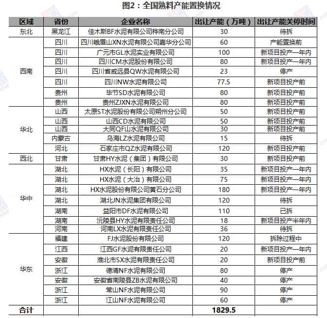 隨著2019年水泥行業(yè)大氣污染防治攻堅戰(zhàn)實施方案實施,要求實現(xiàn)水泥行業(yè)壓減落后熟料產(chǎn)能7000萬噸,全國平均產(chǎn)能利用率達到70%以上。自律淘汰2000t/d以下的水泥生產(chǎn)線,對2000t/d以上的技術(shù)落后的生產(chǎn)線進行減量置換改造。實際2019年全國水泥行業(yè)落實情況如何呢?百年建筑網(wǎng)行情資訊中心對產(chǎn)線更替情況進行了統(tǒng)計: