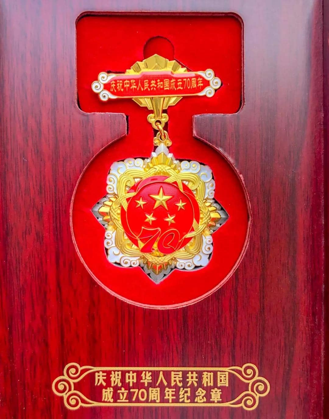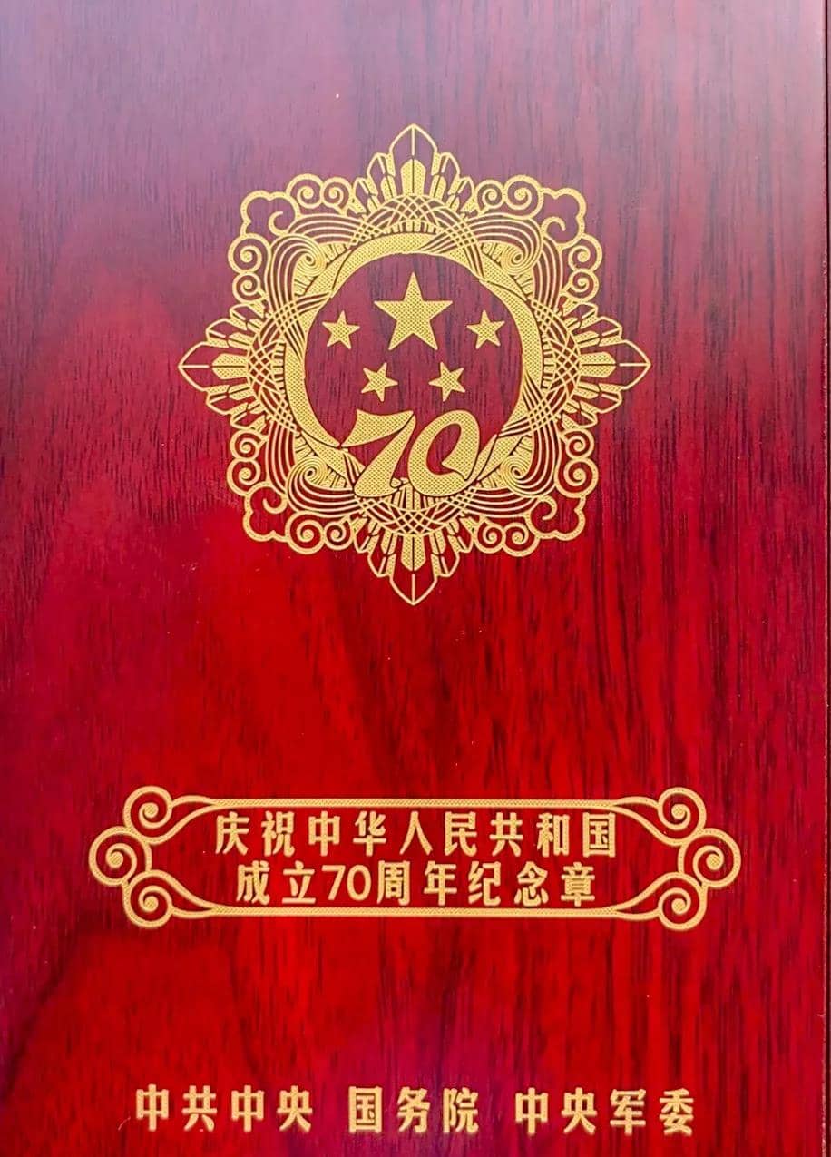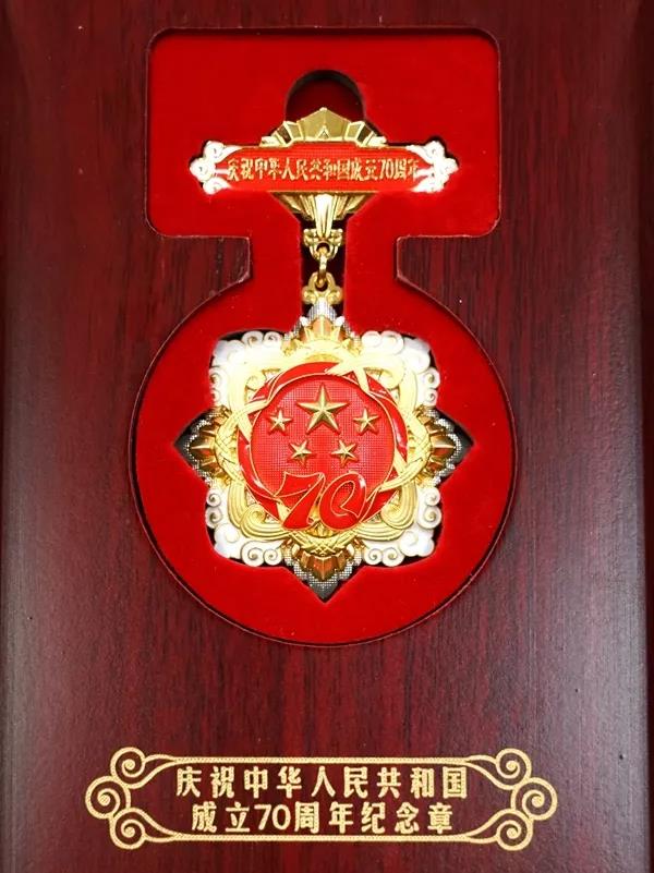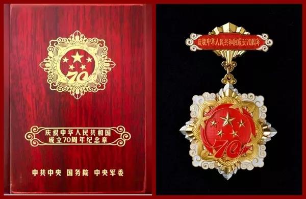 由中共中央、國務(wù)院、中央軍委頒發(fā)的“慶祝中華人民共和國成立70周年”紀(jì)念章,是新中國成立70周年系列慶?;顒拥闹匾M成部分,旨在表彰中華人民共和國成立前參加革命工作和健在的老戰(zhàn)士老同志、中華人民共和國成立后獲得國家級表彰獎勵及以上榮譽(yù)的人員、中華人民共和國成立后因參戰(zhàn)榮立一等功以上獎勵的軍隊(duì)人員,以及為中華人民共和國成立作出杰出貢獻(xiàn)的國際友人。