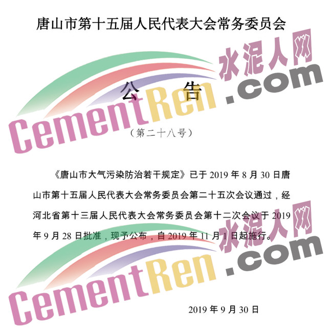 據(jù)水泥人網(wǎng)消息,近日,唐山市第十五屆人民代表大會(huì)常務(wù)委員會(huì)發(fā)布《公告》稱(chēng),《唐山市大氣污染防治若干規(guī)定》已于2019年8月30日唐山市第十五屆人民代表大會(huì)常務(wù)委員會(huì)第二十五次會(huì)議通過(guò),經(jīng)河北省第十三屆人民代表大會(huì)常務(wù)委員會(huì)第十二次會(huì)議于2019年9月28日批準(zhǔn),自2019年11月1日起施行?! ≡撘?guī)定稱(chēng):列入名錄的重點(diǎn)排污單位和市生態(tài)環(huán)境主管部門(mén)確定的其它排污單位,應(yīng)當(dāng)安裝、使用大氣污染排放自動(dòng)監(jiān)測(cè)設(shè)備、與生態(tài)環(huán)境主管部門(mén)的監(jiān)控聯(lián)網(wǎng)?! ∵`反本規(guī)定,有下列行為之一的,由生態(tài)環(huán)境主管部門(mén) 責(zé)令限期改正,處二萬(wàn)元以上五萬(wàn)元以下罰款;情節(jié)較重的,處五萬(wàn)元以上十萬(wàn)元以下罰款;情節(jié)嚴(yán)重的,處十萬(wàn)以上二十萬(wàn)以下罰款;拒不改正的,責(zé)令停產(chǎn)整治;構(gòu)成犯罪的,依法追究刑事責(zé)任: 一、未按照規(guī)定安裝、使用大所占污染排放自動(dòng)監(jiān)測(cè)設(shè)備或者未按照規(guī)定與生態(tài)環(huán)境主管部門(mén)的監(jiān)控設(shè)備聯(lián)網(wǎng),并保證監(jiān)測(cè)設(shè)備常運(yùn)行的; 二、、自動(dòng)監(jiān)測(cè)設(shè)備因故障不能正常動(dòng)行,排污單位未按照規(guī)定向生態(tài)環(huán)境主管部門(mén)報(bào)告的; 三、自動(dòng)監(jiān)測(cè)設(shè)備因故障不能正常運(yùn)行,排污單位未按照規(guī)定報(bào)送人工監(jiān)測(cè)數(shù)據(jù)的; 四、侵占、破壞、損毀或者擅自移動(dòng)、改變、拆除、閑置大氣污染排放自動(dòng)監(jiān)測(cè); 五、篡改、偽造大氣污染自監(jiān)測(cè)數(shù)據(jù)的; 六、未按照規(guī)定對(duì)所排放的工業(yè)廢氣和有毒有害大氣污染物進(jìn)行監(jiān)測(cè)并保存原始監(jiān)測(cè)記錄。 原文如下: