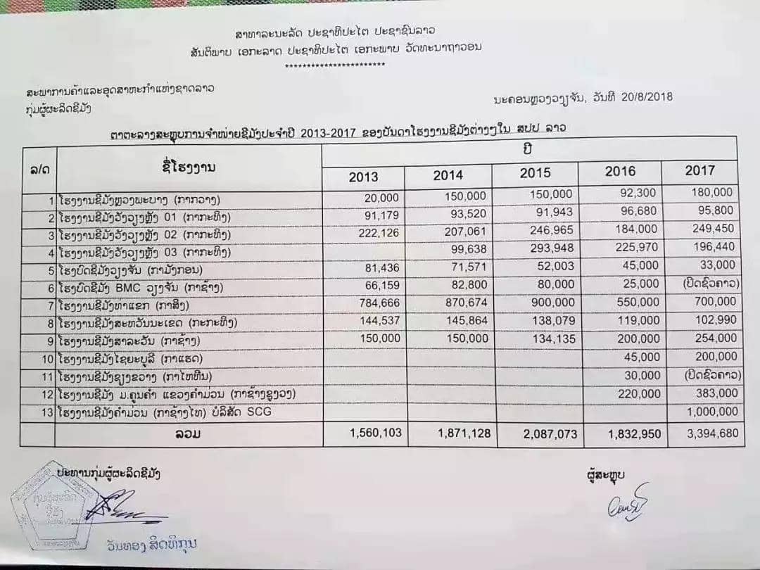 根據(jù)2018年統(tǒng)計(來自水泥生產(chǎn)商集團的信息),老撾在全國范圍內(nèi)共有13個水泥廠,自2013年至2015年,共有9個廠有生產(chǎn)和銷售活動。