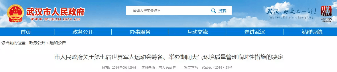 水泥人網(wǎng)消息:湖北武漢全力迎接軍運(yùn)會(huì),決定在武漢行政區(qū)內(nèi)實(shí)施大氣環(huán)境質(zhì)量管理措施。