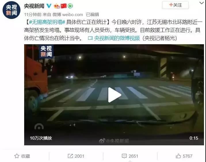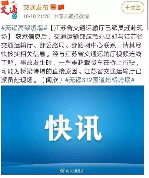 圖片來源:新浪微博@無錫交通廣播晚上8時(shí)許,央視新聞稱,目前,救援車輛已到現(xiàn)場。交警在距離事故現(xiàn)場不到2公里處的華莊岸大橋進(jìn)行封路。提醒大家繞行!