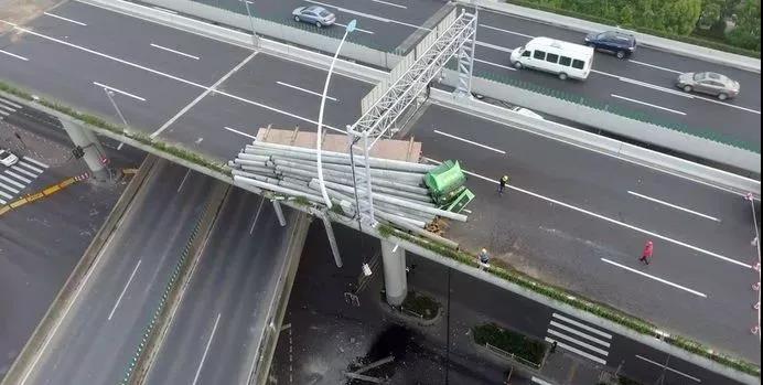 上海中環(huán)線高架內(nèi)圈滬嘉立交出口至滬太路上匝道之間發(fā)生一起貨車單車事故,導(dǎo)致車上裝載的水泥管樁散落,部分管樁翻落至地面道路,事故造成中環(huán)高架主線橋體內(nèi)側(cè)翹起移位。