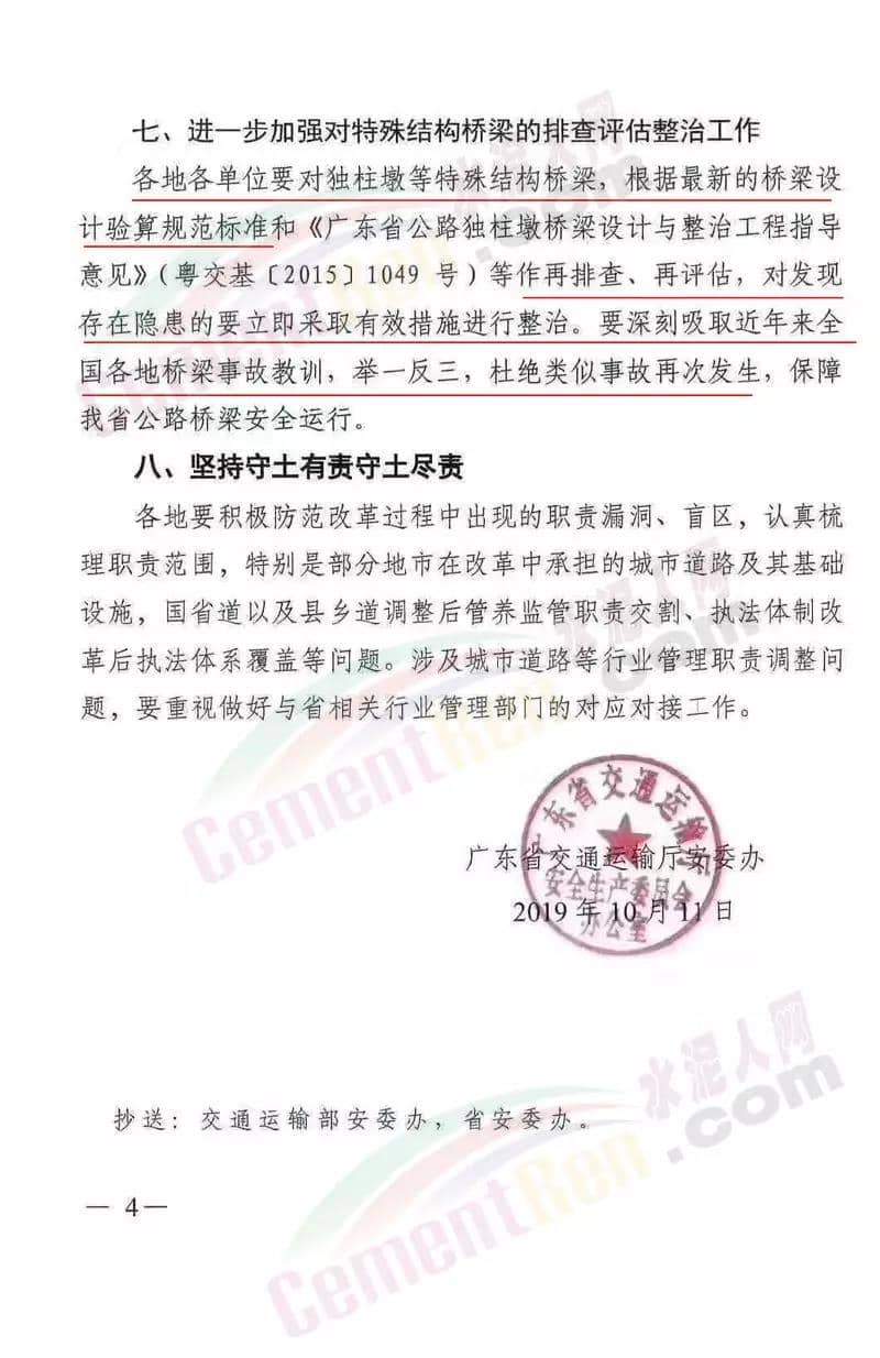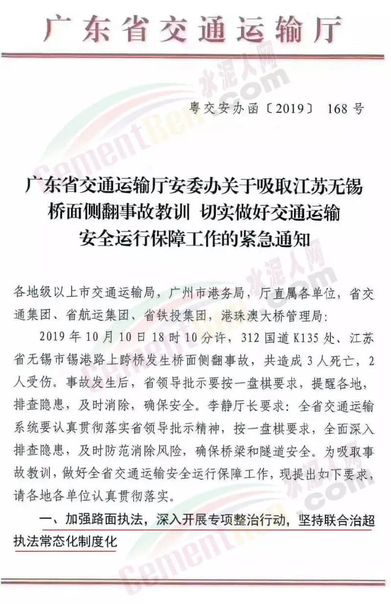 昨日(11日)廣東省交通運(yùn)輸廳下發(fā)《廣東省交通運(yùn)輸廳安委辦關(guān)于吸取江蘇無錫橋面?zhèn)确鹿式逃?xùn) 切實(shí)做好交通運(yùn)輸安全運(yùn)行保障工作的緊急通知》(粵交安辦函【2019】168號(hào))