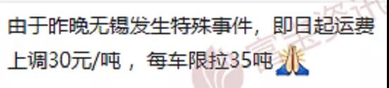 同期物流企業(yè)通知運(yùn)費(fèi)上調(diào)30元/噸且每車限拉35噸。