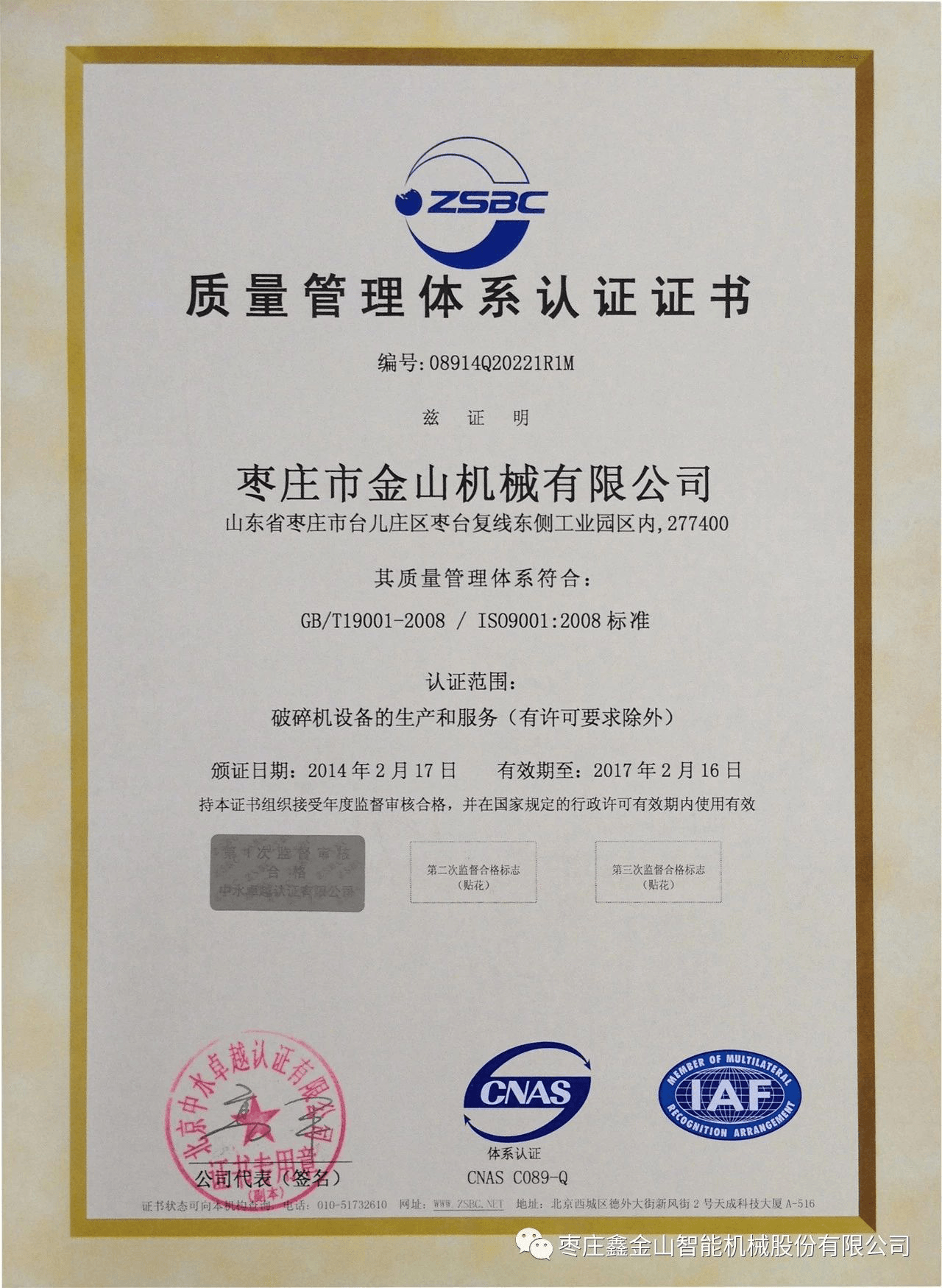 2007年5月,獲得“ISO9001質(zhì)量體系認(rèn)證”,客戶滿意度不斷提升。8月,新型單段錘破所生產(chǎn)的高品質(zhì)骨料成功應(yīng)用于京滬高鐵路棗莊段的施工建設(shè)中。