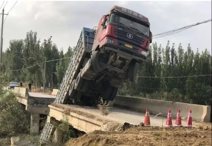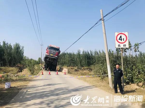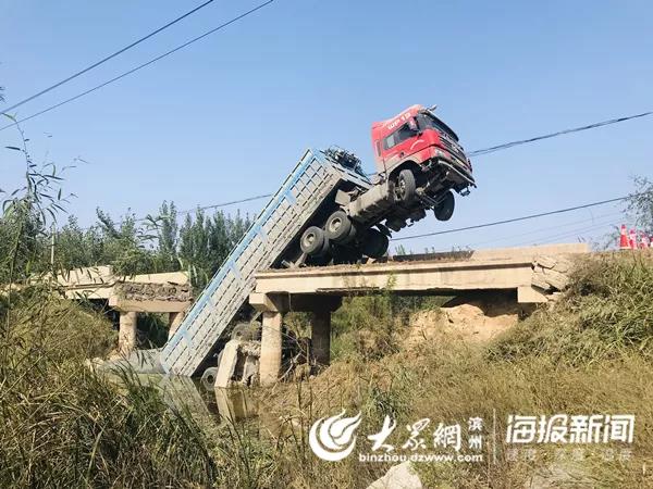 經(jīng)初步調(diào)查,13日凌晨4點(diǎn)左右,一輛魯MAN226冀JSH50掛重型半掛貨車沿渤海十八路由南向北行駛至市西辦事處李茂家村附近,右轉(zhuǎn)彎進(jìn)入連接渤海十八路與李茂家村村西鄉(xiāng)間路的一座寬4米左右的小橋時(shí),致使橋面坍塌?,F(xiàn)場(chǎng)貨車呈翹起之勢(shì),車頭懸于半空中,車尾插入水中,事故未造成人員傷亡。