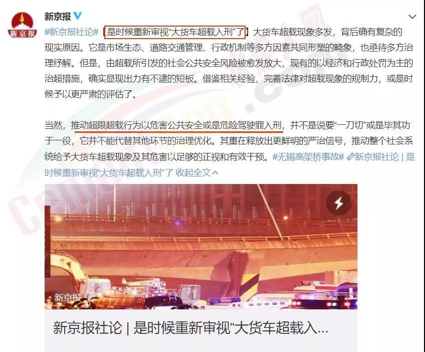 事故發(fā)生后,許多網(wǎng)友也紛紛表態(tài)支持對“超載”入刑,進(jìn)一步加大對超載在法律層面的懲治力度。