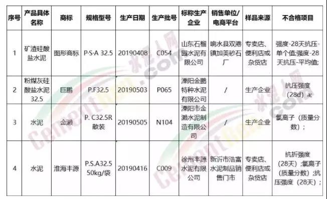河南省市場(chǎng)監(jiān)督管理局在生產(chǎn)加工環(huán)節(jié)對(duì)水泥等19種產(chǎn)品組織開(kāi)展了監(jiān)督抽查,不合格產(chǎn)品情況中包括四批次水泥: