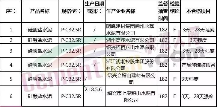 浙江省水泥產(chǎn)品監(jiān)督抽查不合格6批次
