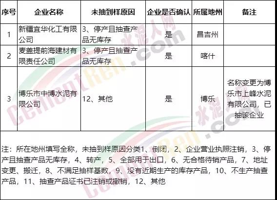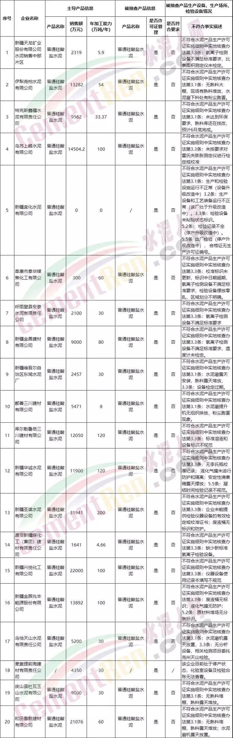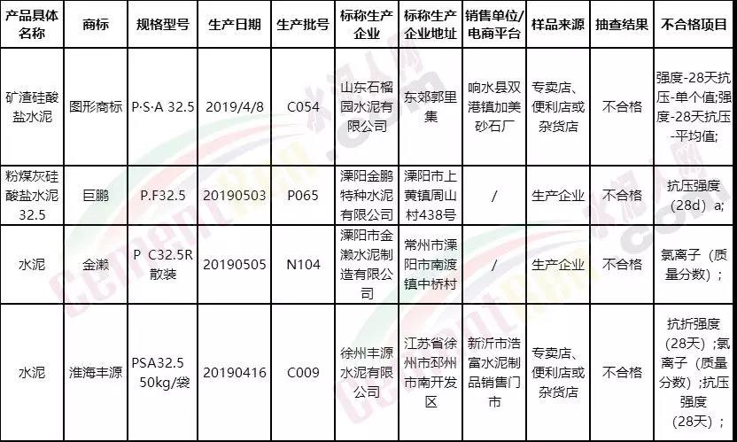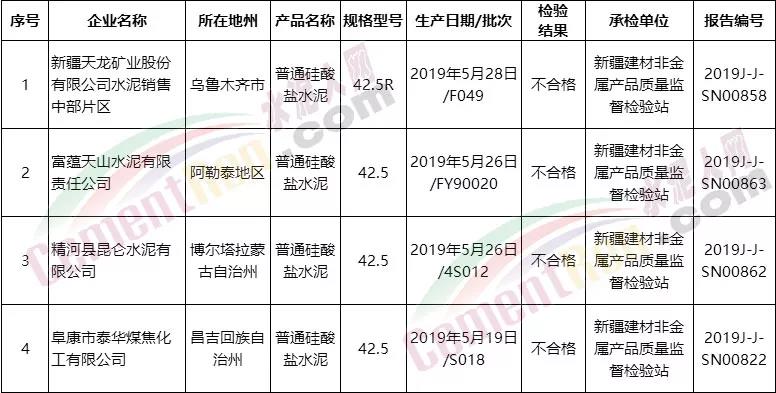 2019年自治區(qū)水泥產(chǎn)品質(zhì)量監(jiān)督抽查未抽樣企業(yè)名單不僅新疆地區(qū),近一年,已經(jīng)多個(gè)區(qū)域市場監(jiān)督管理局通報(bào)抽檢不合格品名單詳情如下: