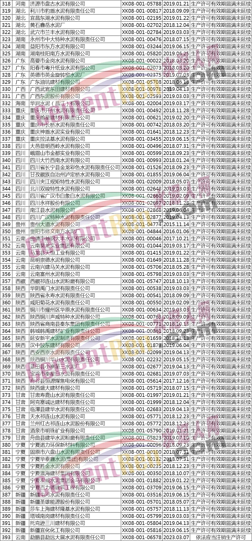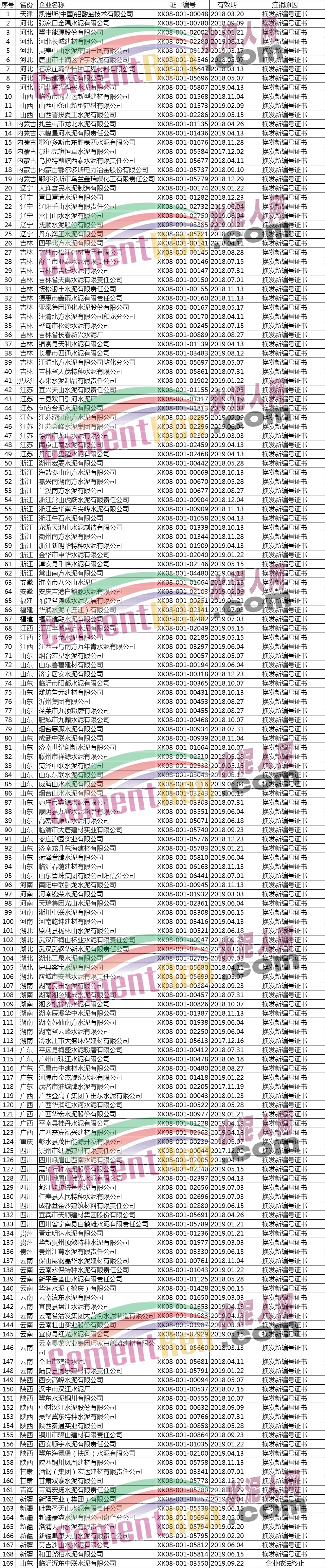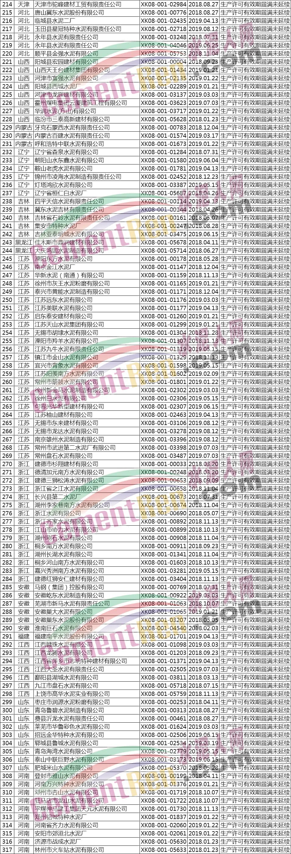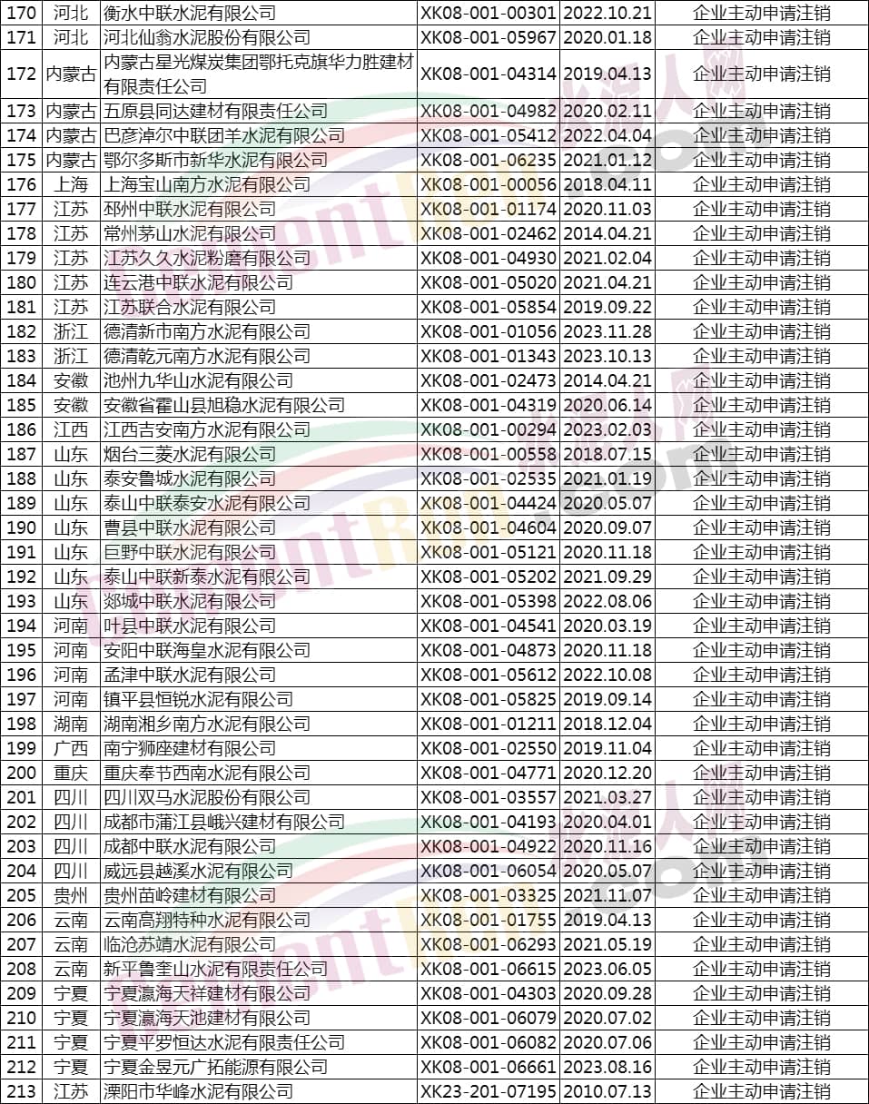 據(jù)水泥人網(wǎng)了解,公告注銷工業(yè)產(chǎn)品生產(chǎn)許可證的603家企業(yè)中包括393家水泥企業(yè)。其注銷原因?yàn)椋瑩Q發(fā)新編號證書、企業(yè)主動申請注銷、生產(chǎn)許可有效期屆滿未延續(xù)等,詳情如下: