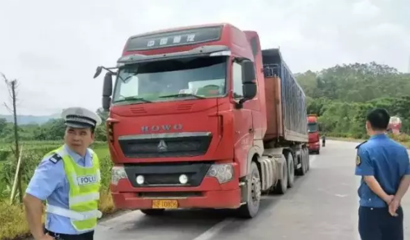 陽江市交通、公安交警執(zhí)法人員在海螺水泥廠路段聯(lián)合開展治超突擊行動
