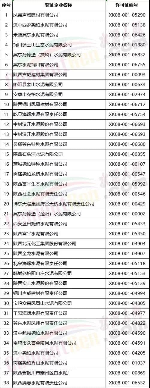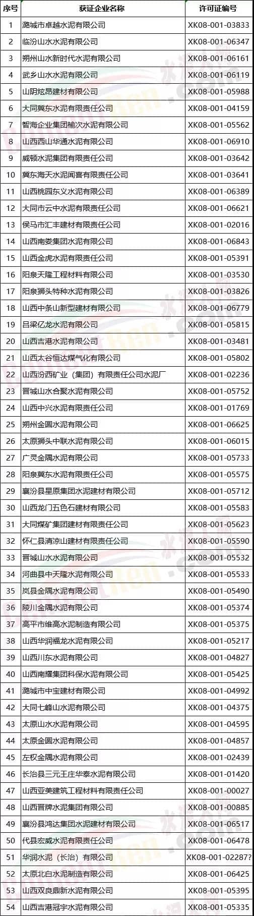 2018年已審核通過并真正實(shí)施的山東泉興水泥有限公司、華沃(棗莊)水泥有限公司、棗莊市沃豐水泥有限公司、山東聯(lián)合王晁水泥有限公司、滕州市東郭水泥有限公司