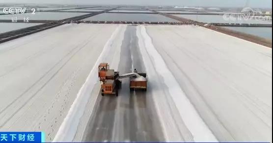 鹽場負(fù)責(zé)人說,海鹽收獲分為兩個季節(jié),春秋季各一次,每個收獲季都在一個月左右,一般是每年的5月和10月。這家鹽場一共是18萬畝,大家輪班作業(yè),24小時不間斷,采用機(jī)組和管道相結(jié)合的方式,一個月之內(nèi)要把鹽全部收完
