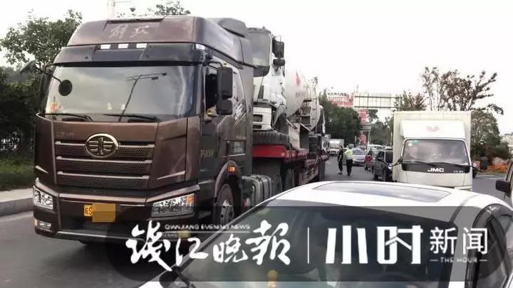 據(jù)了解,這4輛水泥攪拌車屬于同一公司所有,因業(yè)務(wù)需要,需轉(zhuǎn)移到其他城市,為節(jié)省運(yùn)費(fèi),所屬公司想出“奇招”,將其放至半掛車,以“車背車”的方式拖運(yùn)。(來(lái)源:錢江24小時(shí))