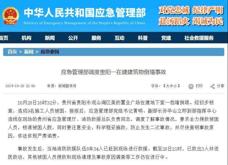 工地發(fā)生坍塌8人死亡,4人受傷 10月28日16時(shí)21分,位于貴州省貴陽(yáng)市觀山湖區(qū)的一在建地下停車場(chǎng)發(fā)生坍塌??逅l(fā)生前,該施工工地上崗當(dāng)班人員共計(jì)14人,事故發(fā)生時(shí)有3人自行逃出,1人被迅速救起,10人被困失聯(lián)。 截至10月29日0時(shí)37分,央視新聞報(bào)道視頻↓↓↓ 截止昨日(29日)凌晨3點(diǎn),10名失聯(lián)人員已經(jīng)全部找到,其中8人死亡,2人受傷。事件中生還的6人中,2人入院治療,垮塌現(xiàn)場(chǎng)救出的2人留院觀察,均生命體征平穩(wěn),沒(méi)有生命危險(xiǎn),其余人經(jīng)檢查身體無(wú)恙已返回住處。 目前,當(dāng)?shù)爻闪⒌膽?yīng)急救援指揮部,正在開(kāi)展受傷人員救治和遇難者家屬善后安撫工作,并對(duì)事故原因進(jìn)行調(diào)查。