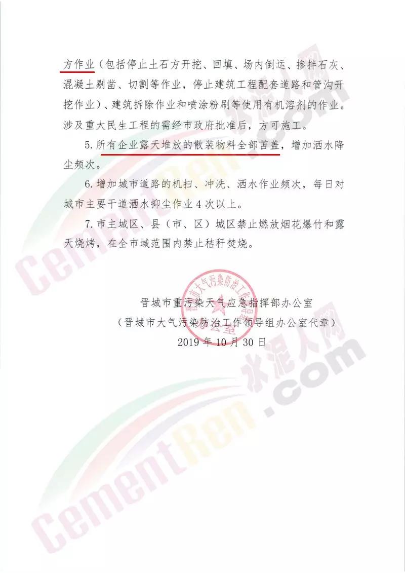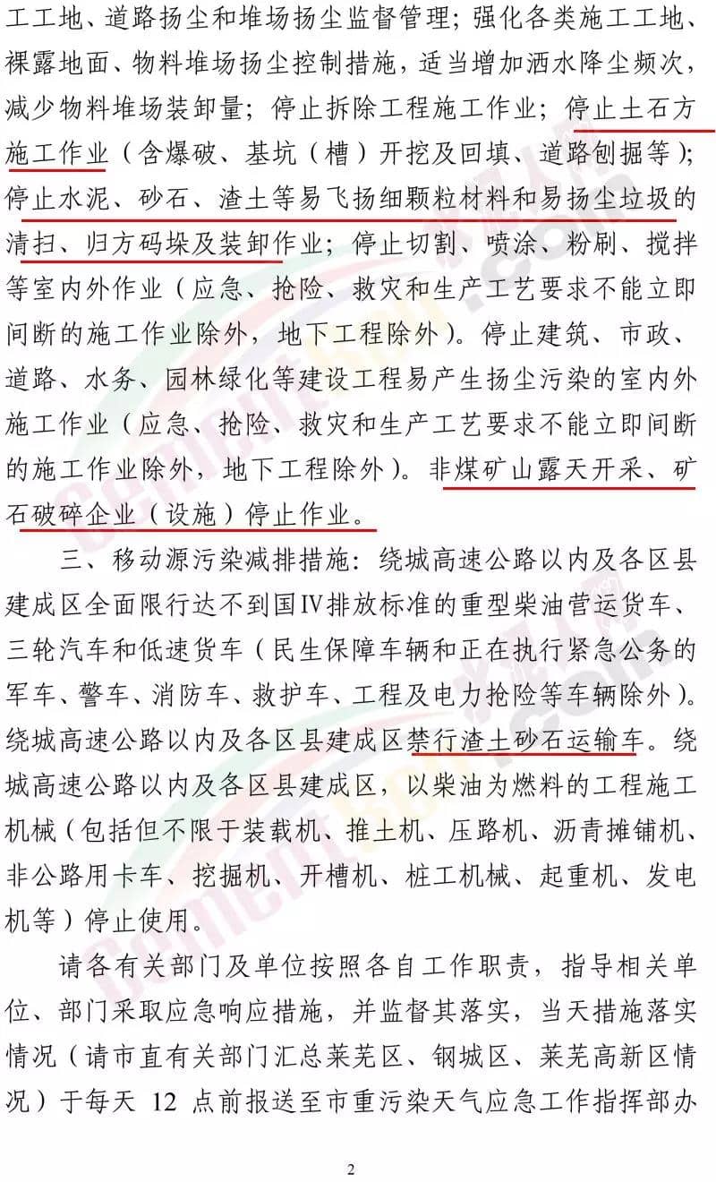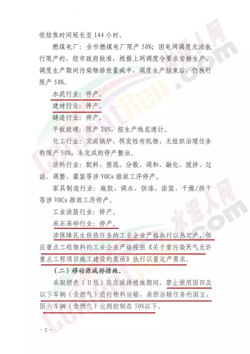 全面落實(shí)應(yīng)急響應(yīng)減排措施工業(yè)源停限產(chǎn)措施。水泥行業(yè)(特種水泥行業(yè)除外)。水泥制品、粉磨站停產(chǎn);水泥熟料生產(chǎn)線停產(chǎn);協(xié)同處置城市生活垃圾或危險(xiǎn)廢物的企業(yè),日處理生活垃圾與污泥總量低于400噸(含)、處理有毒有害廢棄物總量低于熟料產(chǎn)能4%(含)的生產(chǎn)線,停產(chǎn)。移動(dòng)源限行措施。1、施工工地、工業(yè)企業(yè)廠區(qū)和工業(yè)園區(qū)內(nèi)應(yīng)停止使用國二及以下非道路移動(dòng)機(jī)械。2、市中心城區(qū)環(huán)城路以內(nèi)以及各縣(市)區(qū)城區(qū),每天7時(shí)至20時(shí)禁止大型貨車(含持有通行證)、三輪汽車、低速載貨汽車通行,禁止建筑垃圾和渣土運(yùn)輸車、砂石運(yùn)輸車輛上路行駛。3、礦山、洗煤廠、港口、物流(除民生保障類)等涉及大宗原料和產(chǎn)品運(yùn)輸(日常車輛進(jìn)出量超過10輛)的單位禁止使用國四及以下重型載貨汽車(含燃?xì)?進(jìn)行運(yùn)輸。4、工業(yè)企業(yè)移動(dòng)源限行措施執(zhí)行《關(guān)于印送〈關(guān)于加強(qiáng)重污染天氣應(yīng)對(duì)夯實(shí)應(yīng)急減排措施的指導(dǎo)意見〉的函》(環(huán)辦大氣函〔2019〕648號(hào))相關(guān)條款。揚(yáng)塵源控制措施。礦山、沙石料廠、石材廠、石板廠等停止露天作業(yè);施工工地停止土石方作業(yè)、建筑拆除、噴涂粉刷、護(hù)坡噴漿、混凝土攪拌等;主干道和易產(chǎn)生揚(yáng)塵路段增加機(jī)掃和灑水頻次;未安裝密閉裝置易產(chǎn)生遺撒的煤炭、渣土、砂石料等運(yùn)輸車輛停止上路。通知原文如下:
