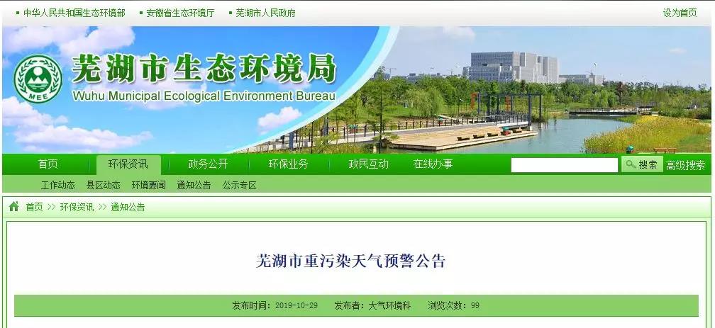 10月29日,安徽省生態(tài)環(huán)境廳發(fā)布了重污染天氣省級(jí)橙色預(yù)警。