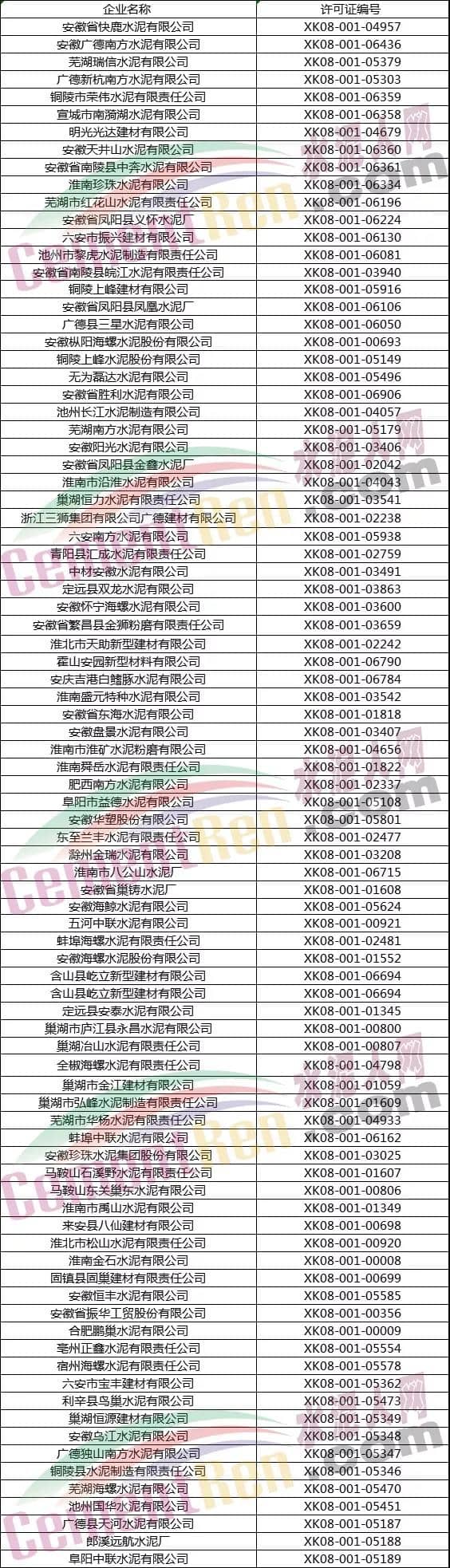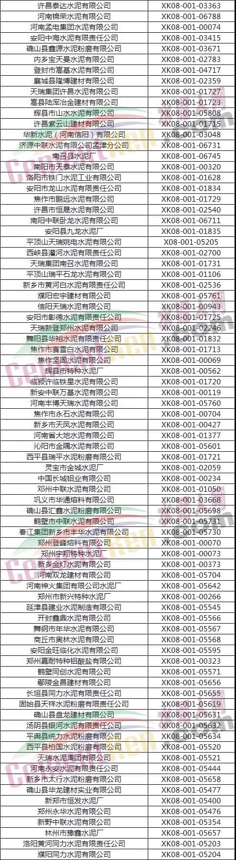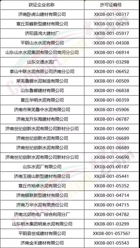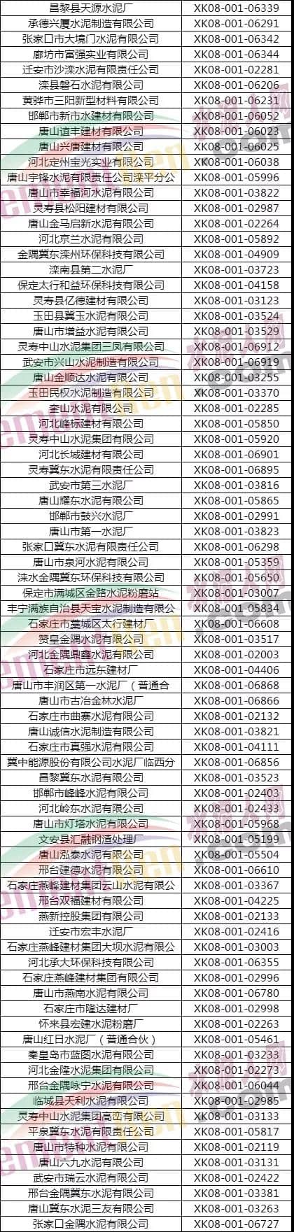 附山東、山西、河北、河南、江蘇、安徽省部分水泥企業(yè)名單。