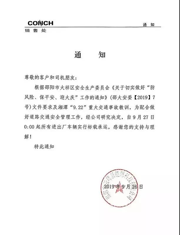 為積極響應(yīng)政府指示精神,鎮(zhèn)江北固海螺要求廣大客戶及貨運(yùn)承運(yùn)方,能夠自覺遵守國(guó)家相關(guān)法律法規(guī)及管理規(guī)定,做到合法合規(guī)運(yùn)輸。同時(shí)公司將依據(jù)政府相關(guān)規(guī)定,加強(qiáng)對(duì)進(jìn)廠提貨車輛的管理,推行標(biāo)噸裝載運(yùn)輸,按照《車輛行駛證》的核載量裝貨、嚴(yán)禁超重。