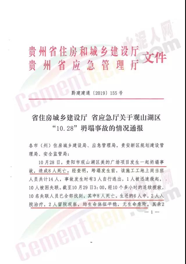 會議通報,觀山湖區(qū)美的置業(yè)廣場項目在建地下停車場于10月28日16:21許發(fā)生坍塌。倒塌發(fā)生前,該施工工地上崗當班人員共計14人,事故發(fā)生時3人自行逃出,1人被迅速救起,10人被困失聯(lián)。截至10月29日3:00,經(jīng)10個多小時的連續(xù)搜救,10名失聯(lián)人員已全部找到,其中8人死亡。生還6人中,2人入院治療,2人留院觀察,均生命體征平穩(wěn),其余2人經(jīng)檢查身體無恙已返回住處。