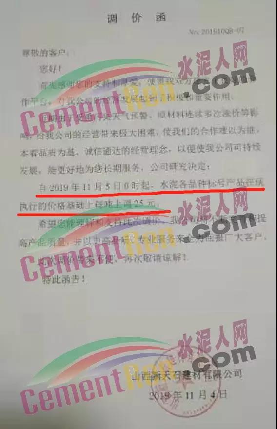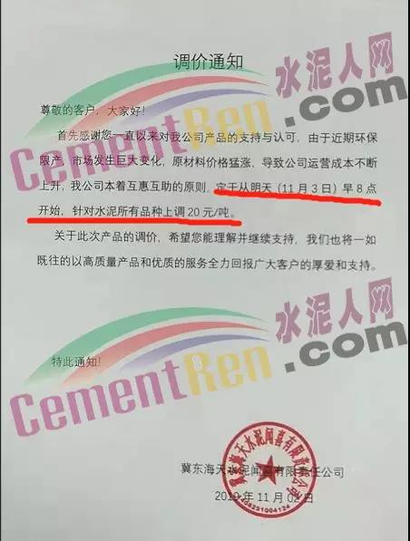 11月4日,安徽銅陵地區(qū)水泥行情上漲20元/噸,現(xiàn)主流品牌P.O42.5散裝水泥價(jià)格在490-500元/噸。銷量小幅提升,主要因庫(kù)存偏低,水泥行情偏強(qiáng)運(yùn)行?! ?1月4日,湖北荊州、荊門地區(qū)水泥價(jià)格上調(diào)20-30元/噸,下游區(qū)域水泥價(jià)格大幅上調(diào),本地水泥價(jià)格隨之上調(diào),目前正逐步落實(shí)中,落實(shí)情況還有待跟蹤。 11月2日,冀東海天水泥聞喜有限公司發(fā)布調(diào)價(jià)通知稱:由于近期環(huán)保限產(chǎn),市場(chǎng)發(fā)生巨大變化,原材料價(jià)格猛漲,導(dǎo)致公司運(yùn)營(yíng)成本不斷上升,公司本著互惠互助原則,從11月3日早8點(diǎn)開始,所有品種水泥上調(diào)20元/噸。