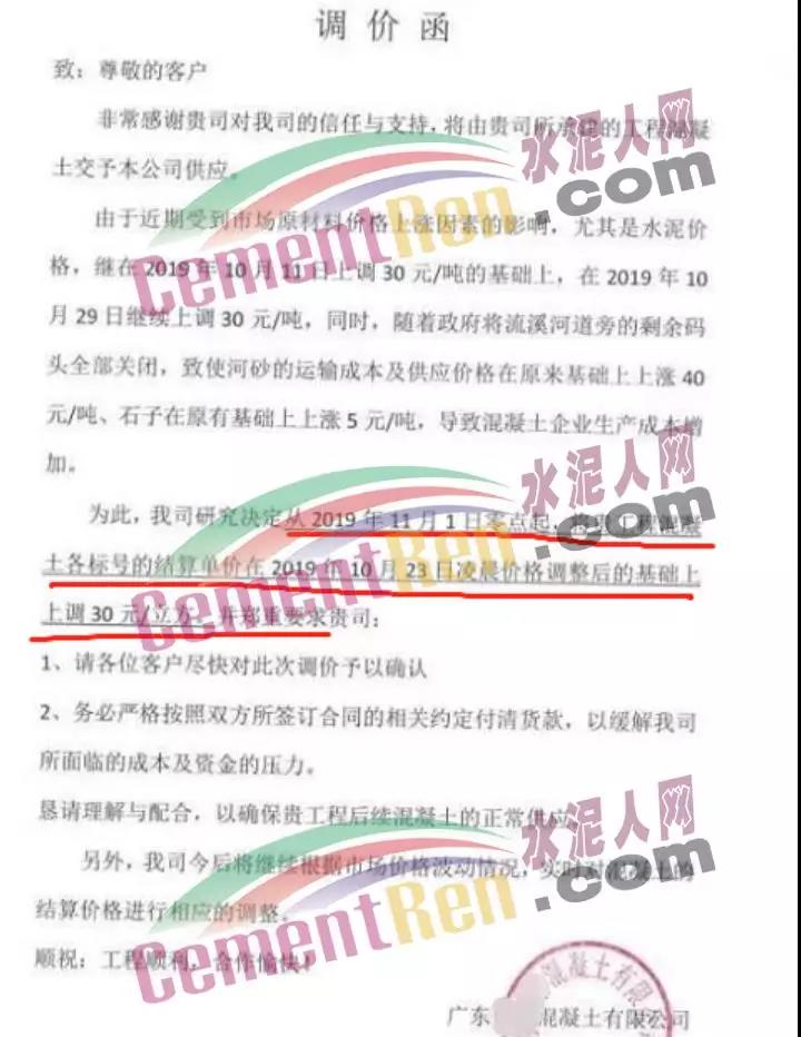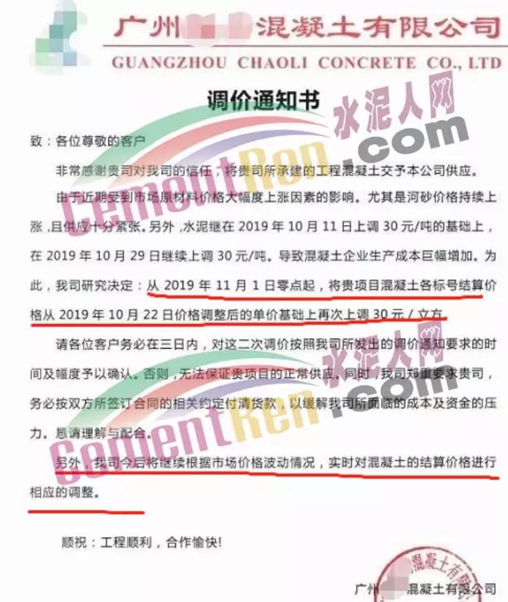 山東多地水泥企業(yè)熟料供應(yīng)持續(xù)偏緊,臨沂、濟(jì)寧、菏澤、日照、淄博、濰坊等地區(qū)水泥行情普遍上漲20-40元/噸。青島、臨沂、日照、棗莊等地區(qū)再次上漲20-30元/噸?! ∈?a href="http://www.ifaga.cn/jiage/list_309.html" target="_blank" class="keylink">水泥價(jià)格、砂石價(jià)格持續(xù)上漲的影響,近日,混凝土行業(yè)也迎來(lái)了新一輪漲價(jià),據(jù)水泥人網(wǎng)了解,從目前多家混凝土企業(yè)發(fā)布的漲價(jià)通知來(lái)看,近半個(gè)月的時(shí)間里,混凝土價(jià)格已經(jīng)累計(jì)上漲60元/立方米?! 』炷疗髽I(yè)全線飆漲