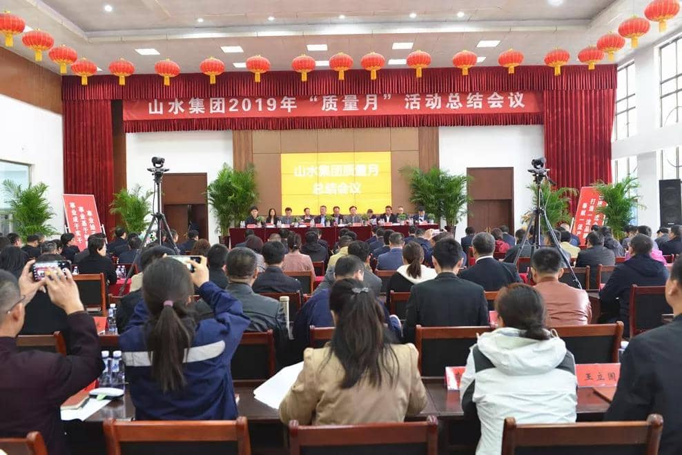 集團領導、生產監(jiān)控部負責人王金祥作《山水集團2019年度質量月活動情況通報》。