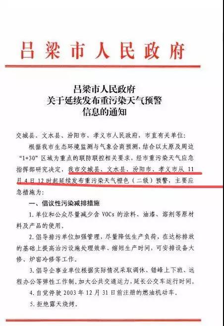 此外,為有效應(yīng)對(duì)空氣重污染,保護(hù)廣大市民健康,按照《晉中市人民政府關(guān)于延續(xù)晉中市重污染天氣預(yù)警的通告》的總體要求,決定延期市城區(qū)和榆次區(qū)綠色運(yùn)輸示范區(qū)重污染天氣交通管制,繼續(xù)啟動(dòng)重污染天氣應(yīng)急預(yù)案橙色(二級(jí))響應(yīng)?,F(xiàn)就有關(guān)事項(xiàng)通告如下:一、管制時(shí)間:2019年10月31日12時(shí)至2019年11月8日24時(shí)二、管制區(qū)域:1、晉中市市城區(qū):鳴謙大街(含)以南、鳳棲大街(含)以北、錦東大道(含)以西、經(jīng)西大道(不含)以東道路圍合區(qū)域內(nèi)道路。2、榆次區(qū)綠色示范運(yùn)輸區(qū):秋郭線到榆次區(qū)烏金山鎮(zhèn)高壁村、榆次區(qū)烏金山后溝村,沿旅游專線、中都北路、鳴謙大街、錦東大道到榆次豐潤(rùn)澤園區(qū);沿北橋線、源高線,到榆次區(qū)東趙鄉(xiāng)石羊坂村;沿源高線、石后線,到榆次區(qū)東趙鄉(xiāng)后溝村;沿東后線,經(jīng)榆次區(qū)東趙鄉(xiāng)西窯村,穿榆次區(qū)東趙鄉(xiāng)康培苗木基地,沿順城東街、環(huán)城南路、源東線、豆東線、新開路,到榆次區(qū)北田鎮(zhèn)張胡村。三、管制措施: 除城市運(yùn)行民生保障類車輛、執(zhí)行任務(wù)特種車輛、?;奋囕v外:1、“冒黑煙”車輛一律禁行;2、市城區(qū)國(guó)四以下(含)中型、重型柴油貨運(yùn)車輛全天24小時(shí)禁行(含已辦理《通行證》車輛);3、市城區(qū)建筑垃圾和渣土運(yùn)輸車、混凝土罐車、砂石運(yùn)輸車等重型車輛全天24小時(shí)禁行(含已辦理《通行證》車輛);4、榆次區(qū)綠色示范運(yùn)輸區(qū)輕型、中型、重型柴油貨車、三輪汽車和低速載貨車全天24小時(shí)禁行(含已辦理《通行證》車輛)。四、在實(shí)行交通管制期間,除執(zhí)行本《通告》規(guī)定外,其他交通管理措施仍然有效。對(duì)違反規(guī)定行駛的機(jī)動(dòng)車,公安交通管理部門將依法處理。特此通告。