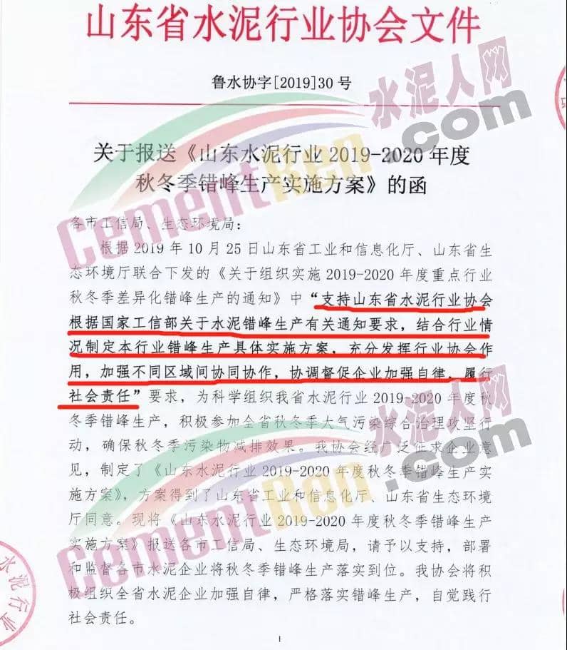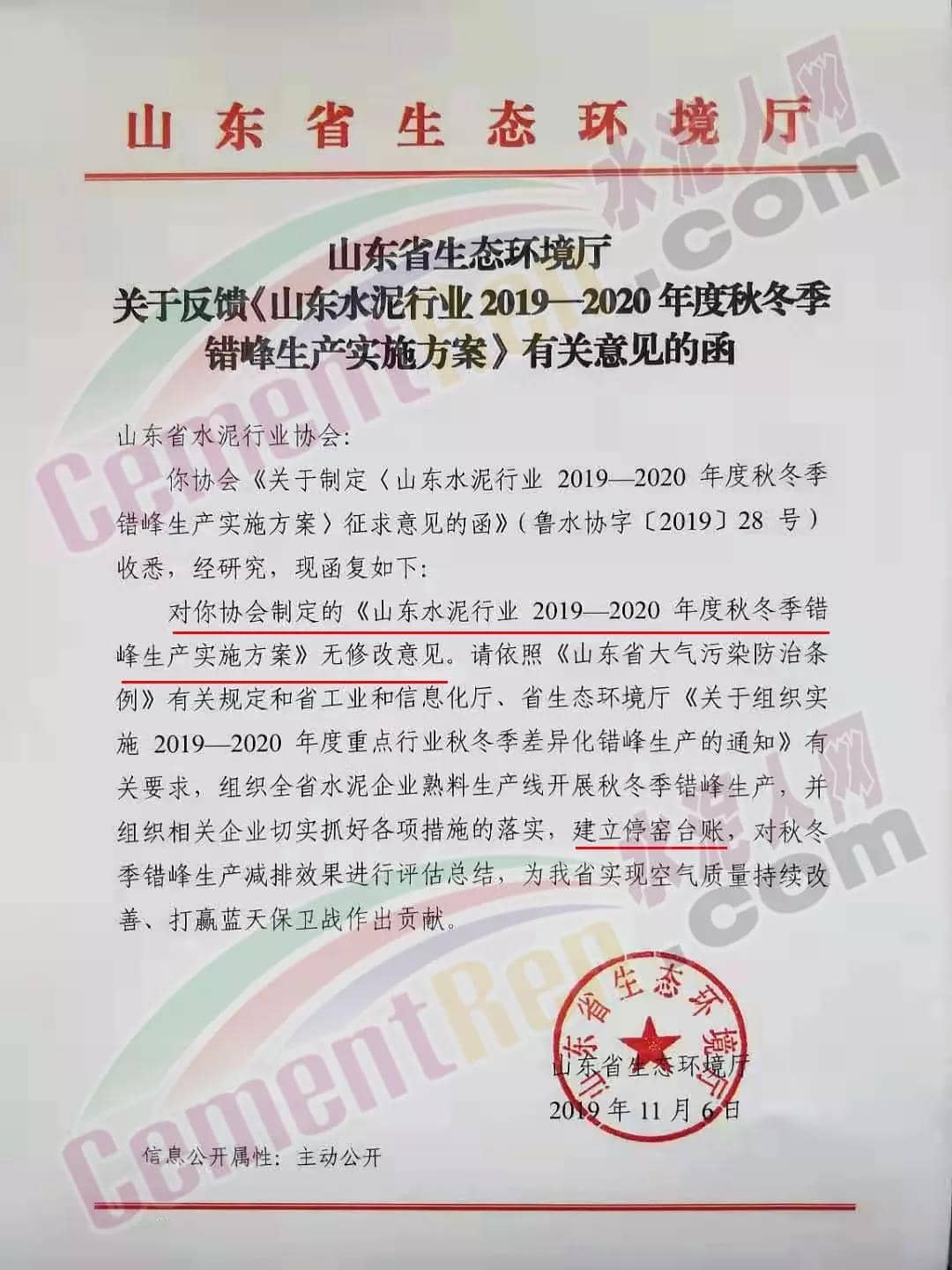 山東省水泥行業(yè)協(xié)會(huì)發(fā)布的《山東水泥行業(yè)2019-2020年度秋冬季錯(cuò)峰生產(chǎn)實(shí)施方案》稱,為積極應(yīng)對(duì)秋冬季氮氧化物和臭氧污染,為建設(shè)美麗山東做出應(yīng)有貢獻(xiàn),結(jié)合山東水泥行業(yè)特點(diǎn),山東水泥行業(yè)協(xié)會(huì)經(jīng)廣泛征求企業(yè)意見(jiàn),特制定山東水泥行業(yè)2019-2020年度秋冬季錯(cuò)峰生產(chǎn)實(shí)施方案。