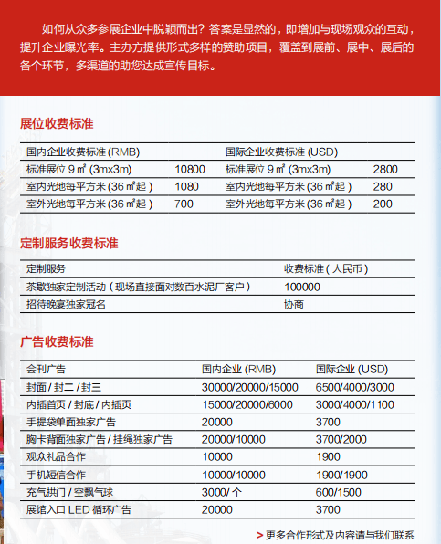 據(jù)統(tǒng)計,展會期間將有10000余名的專業(yè)觀眾蒞臨現(xiàn)場,通過面對面交流,促進企業(yè)與您更加穩(wěn)固的合作關(guān)系。主辦方也將與您共同探討如何年對行業(yè)的新發(fā)展,以嶄新的視角呈現(xiàn)了最新的產(chǎn)品、技術(shù)、服務(wù)等解決方案。