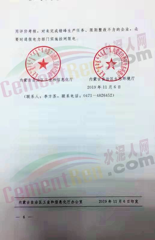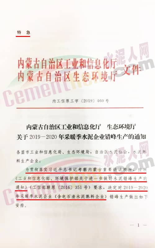 水泥人網(wǎng)消息:11月6日內(nèi)蒙古自治區(qū)工業(yè)和信息化廳、內(nèi)蒙古自治區(qū)生態(tài)環(huán)境廳發(fā)布了特急文件《關(guān)于2019-2020年采暖季水泥企業(yè)錯(cuò)峰生產(chǎn)》,通知稱:為了貫徹國家領(lǐng)導(dǎo)人考察內(nèi)蒙古重要講話精神,按照《工業(yè)化和信息化部、環(huán)境保護(hù)部關(guān)于進(jìn)一步做好水泥錯(cuò)峰生產(chǎn)的通知》(工信部聯(lián)原【2016】351號(hào))要求,決定對2019-2020年采暖季水泥企業(yè)(含電石渣水泥熟料企業(yè))錯(cuò)峰生產(chǎn)做出如下安排。