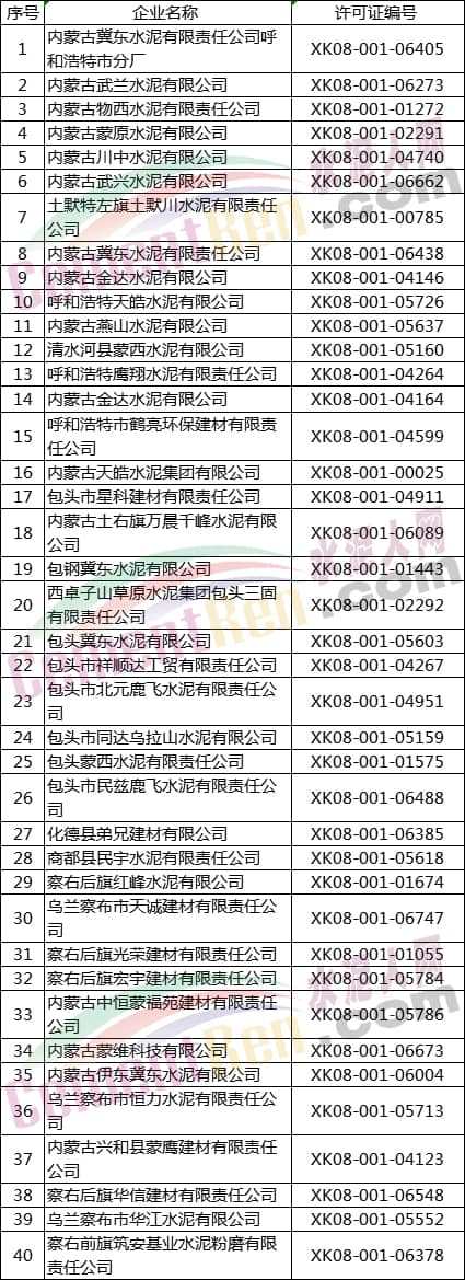 7個(gè)地區(qū)部分水泥企業(yè)名單如下: