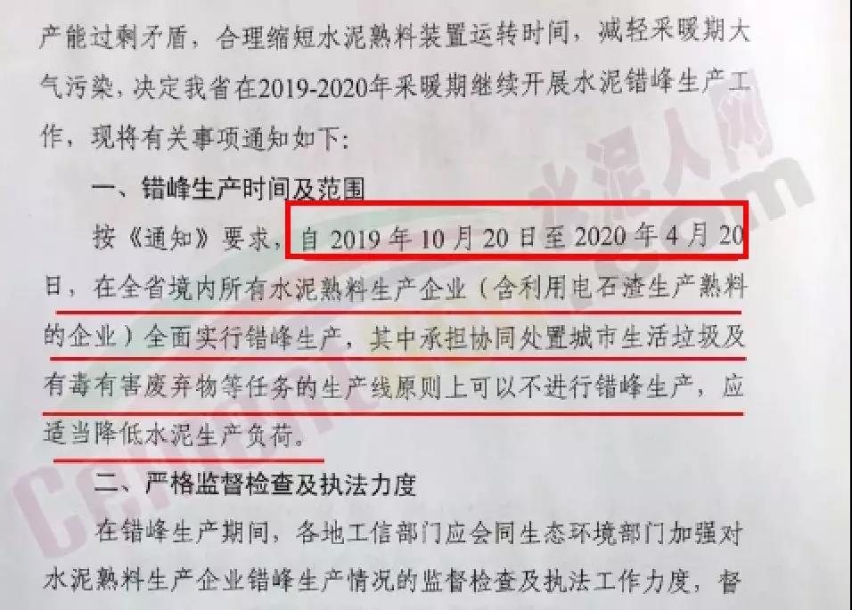 魯南中聯(lián)水泥通知所有進(jìn)廠運(yùn)輸車輛需提前將車輛行駛證復(fù)印件,環(huán)保信息隨車清單復(fù)印件,報(bào)送行政人事部保安部留存,未提前上報(bào)的車輛禁止入廠。據(jù)水泥人網(wǎng)了解,山東絕大多數(shù)企業(yè)自上月下旬開始執(zhí)行限量供應(yīng)以保供重點(diǎn)項(xiàng)目。日前,水泥人網(wǎng)轉(zhuǎn)發(fā)了《山東水泥行業(yè)2019-2020年度秋冬季錯(cuò)峰生產(chǎn)實(shí)施方案》(相關(guān)鏈接:定了!山東省所有水泥企業(yè)11月15日停產(chǎn)4個(gè)月!),消息一經(jīng)發(fā)出山東周邊河北、河南等多區(qū)域都沸騰了。截止目前泛東北區(qū)域遼寧、黑龍江、內(nèi)蒙古以及山東、山西等多區(qū)域已經(jīng)提前發(fā)布了采暖季錯(cuò)峰生產(chǎn)計(jì)劃。河南省也早在2月下旬發(fā)布的大氣污染防治攻堅(jiān)實(shí)施方案中就提到了11月、12月份停窯。