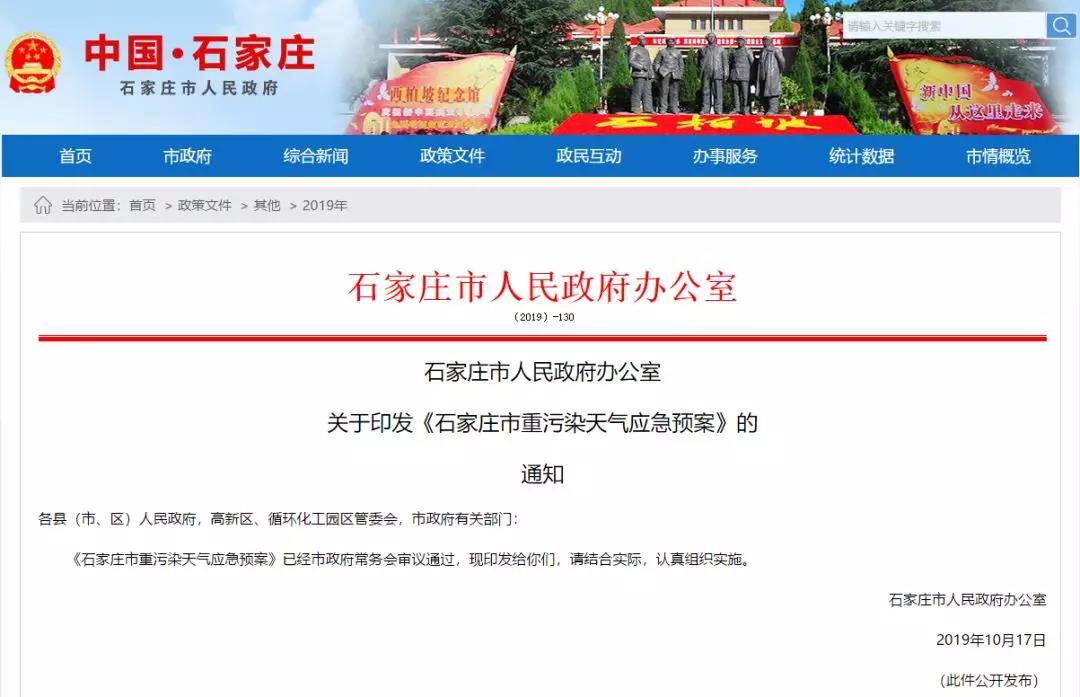 前不久,石家莊市人民政府辦公室也印發(fā)了《石家莊市重污染天氣應急預案)。
