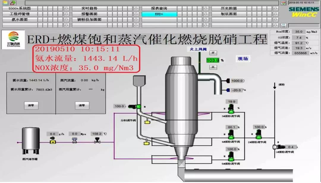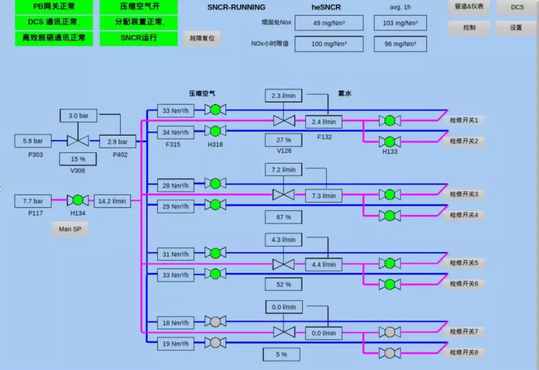 其原理主要是采用分層級(jí)安裝可獨(dú)立控制的噴槍組,利用智能實(shí)時(shí)優(yōu)化控制系統(tǒng)對(duì)NOx排放進(jìn)行預(yù)測(cè),對(duì)生產(chǎn)工況的變化實(shí)時(shí)跟隨,根據(jù)工況及時(shí)調(diào)整并分別控制氨水的噴射位置及噴射量,從而達(dá)到提高脫硝效率、減少氨水用量、降低氨逃逸的目的。