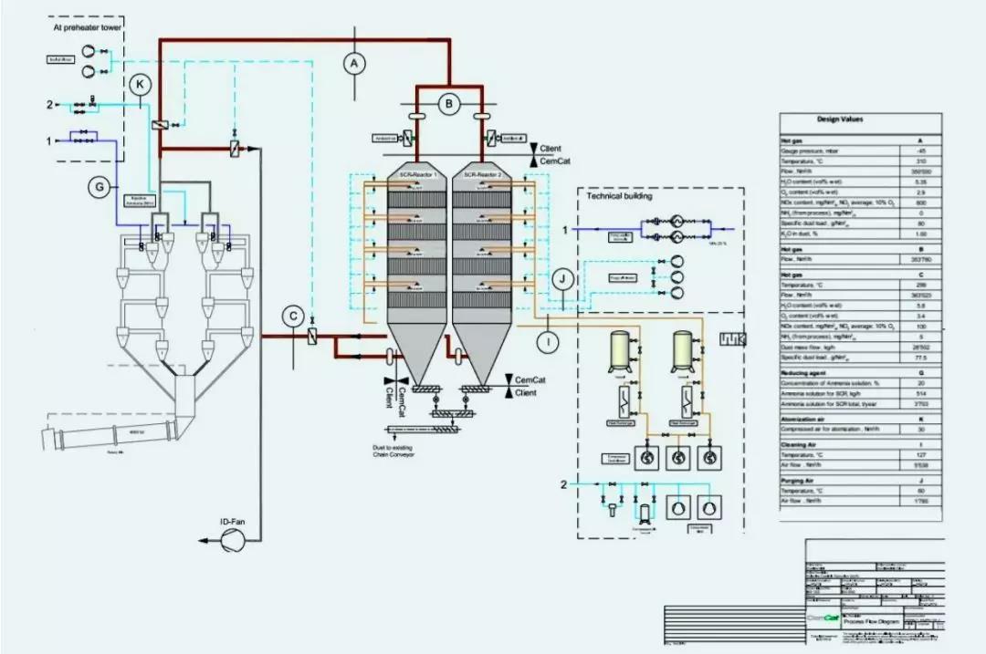 蒂森、克虜伯、伯力鳩斯,這幾個(gè)都是世界上很牛的公司,現(xiàn)在又組合成一家了!關(guān)于水泥行業(yè)的高塵特點(diǎn),他們認(rèn)為沒(méi)有問(wèn)題,高塵反而有利于緩解催化劑中毒;至于堵塞問(wèn)題,他們有有效的清灰手段。因此,他們直接采用高溫高塵的SCR工藝,據(jù)說(shuō)他們有成熟的經(jīng)驗(yàn),在德國(guó)的幾條線也是這么干的,而且都運(yùn)行良好。