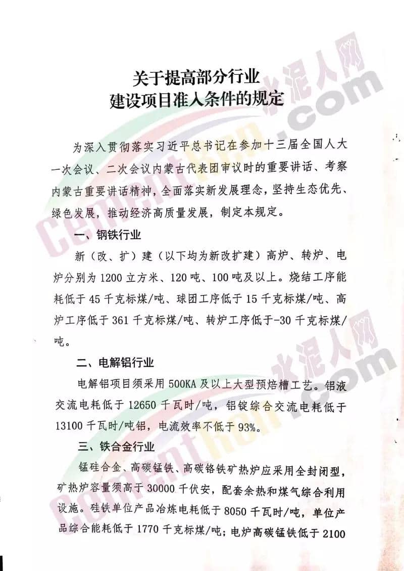 日前,水泥人網(wǎng)自內(nèi)蒙古自治區(qū)工信及獲悉,本月初自治工信廳聯(lián)合發(fā)改委聯(lián)合下發(fā)《關(guān)于提高部分行業(yè)建設(shè)項目準入條件規(guī)定的通知》。