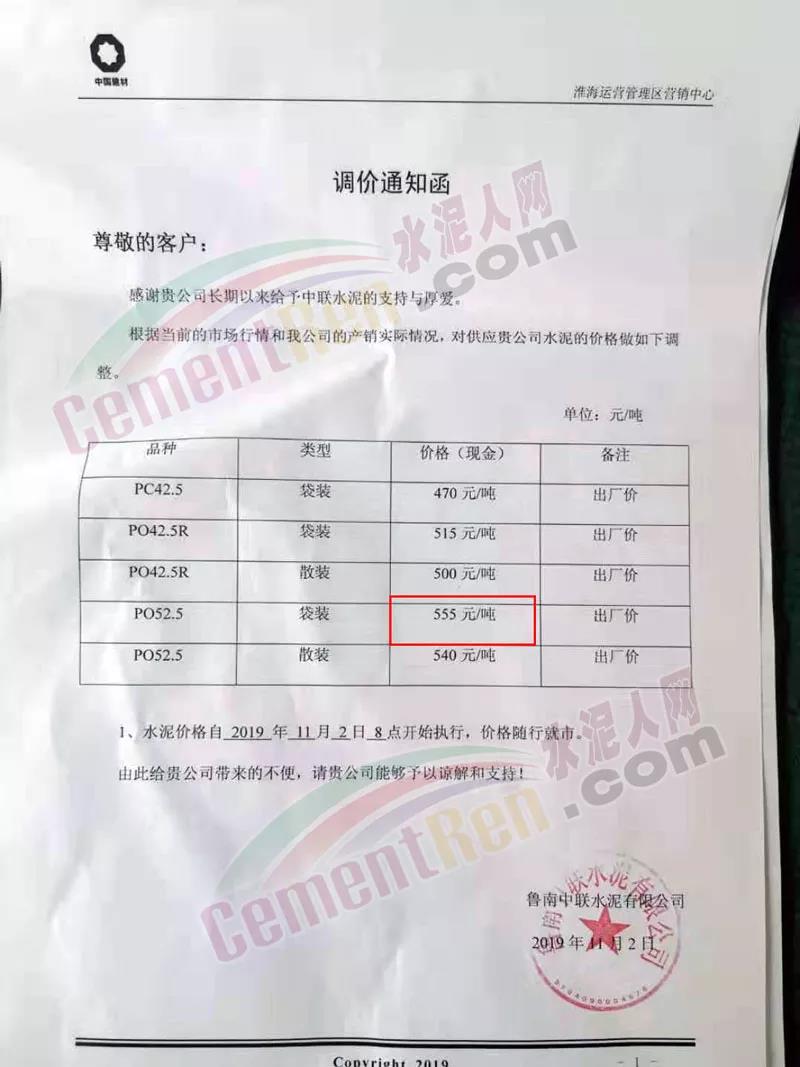 魯南中聯(lián)水泥11月2日?qǐng)?bào)價(jià)