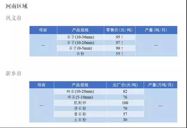 砂石方面因供需失衡,多區(qū)域出現(xiàn)較大缺口和供需失衡現(xiàn)象。相關(guān)統(tǒng)計(jì)數(shù)據(jù)顯示,河南省建筑用砂年需求量約2.1億噸,而全省經(jīng)批準(zhǔn)許可的河砂開采量僅4000萬噸左右,建筑用砂缺口達(dá)1.7億噸。缺口高達(dá)81%,砂石供需矛盾愈發(fā)突出。砂石協(xié)會(huì)近期公布的數(shù)據(jù)顯示,河南區(qū)域機(jī)制砂出廠價(jià)接近100元/噸。各類石子均現(xiàn)價(jià)格上漲。