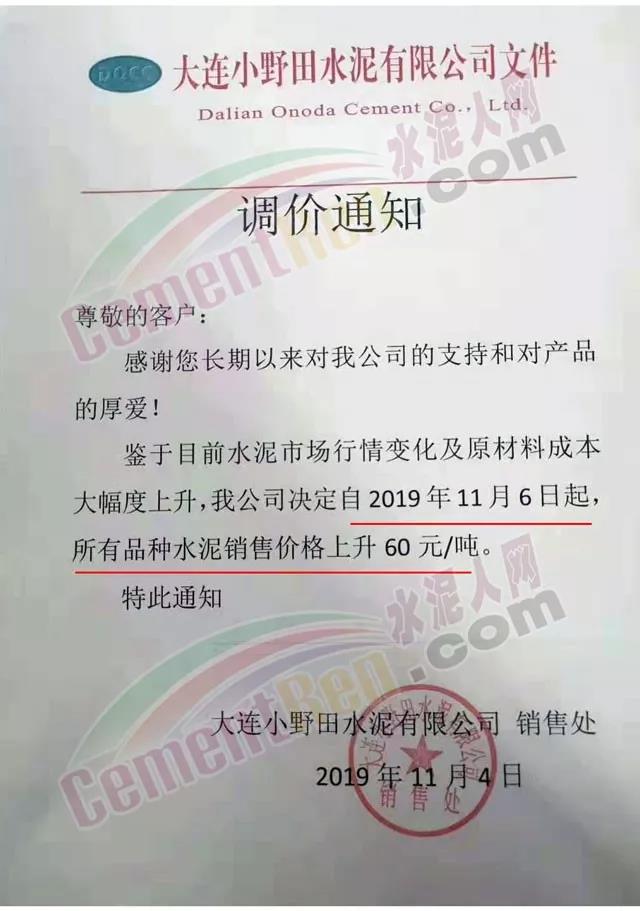 據(jù)水泥人網(wǎng)了解,目前遼中南區(qū)域部分企業(yè)庫(kù)存量在80%左右,因物流查超限加嚴(yán)區(qū)域內(nèi)標(biāo)載車輛緊缺,企業(yè)熟料及水泥運(yùn)輸受限。企業(yè)負(fù)責(zé)人稱,有貨運(yùn)不出去。一次性大漲60元/噸,價(jià)格高達(dá)900元/噸遼寧大連主導(dǎo)企業(yè)小野田水泥及大水集團(tuán)發(fā)調(diào)價(jià)通知上調(diào)水泥價(jià)格。11月4日大連小野田水泥有限公司銷售處調(diào)價(jià)通知稱,鑒于目前水泥市場(chǎng)行情變化及原材料成本大幅度上升公司決定 自11月6日起,所有品種水泥上調(diào)60元/噸。據(jù)水泥人網(wǎng)了解,大連小野田水泥此前PII52.5水泥報(bào)價(jià)840元/噸,此次價(jià)格一次性上60元/噸,漲價(jià)后高達(dá)900元/噸。