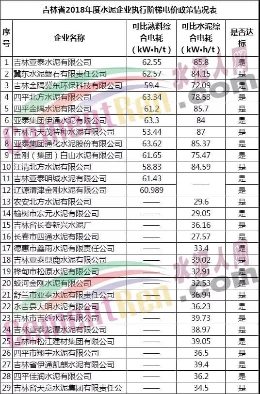 附吉林省2018年度水泥企業(yè)執(zhí)行階梯電價政策情況表: