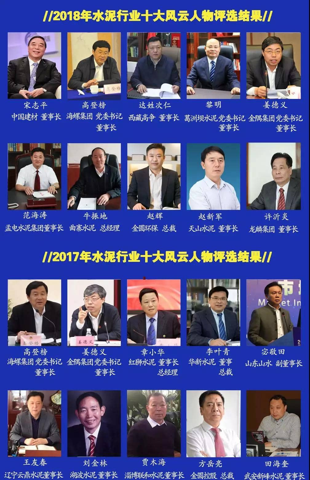 代表性:評選覆蓋了整個水泥工業(yè)的精英、管理層、專家