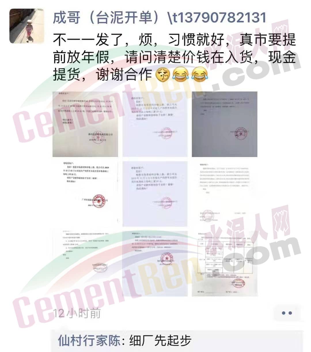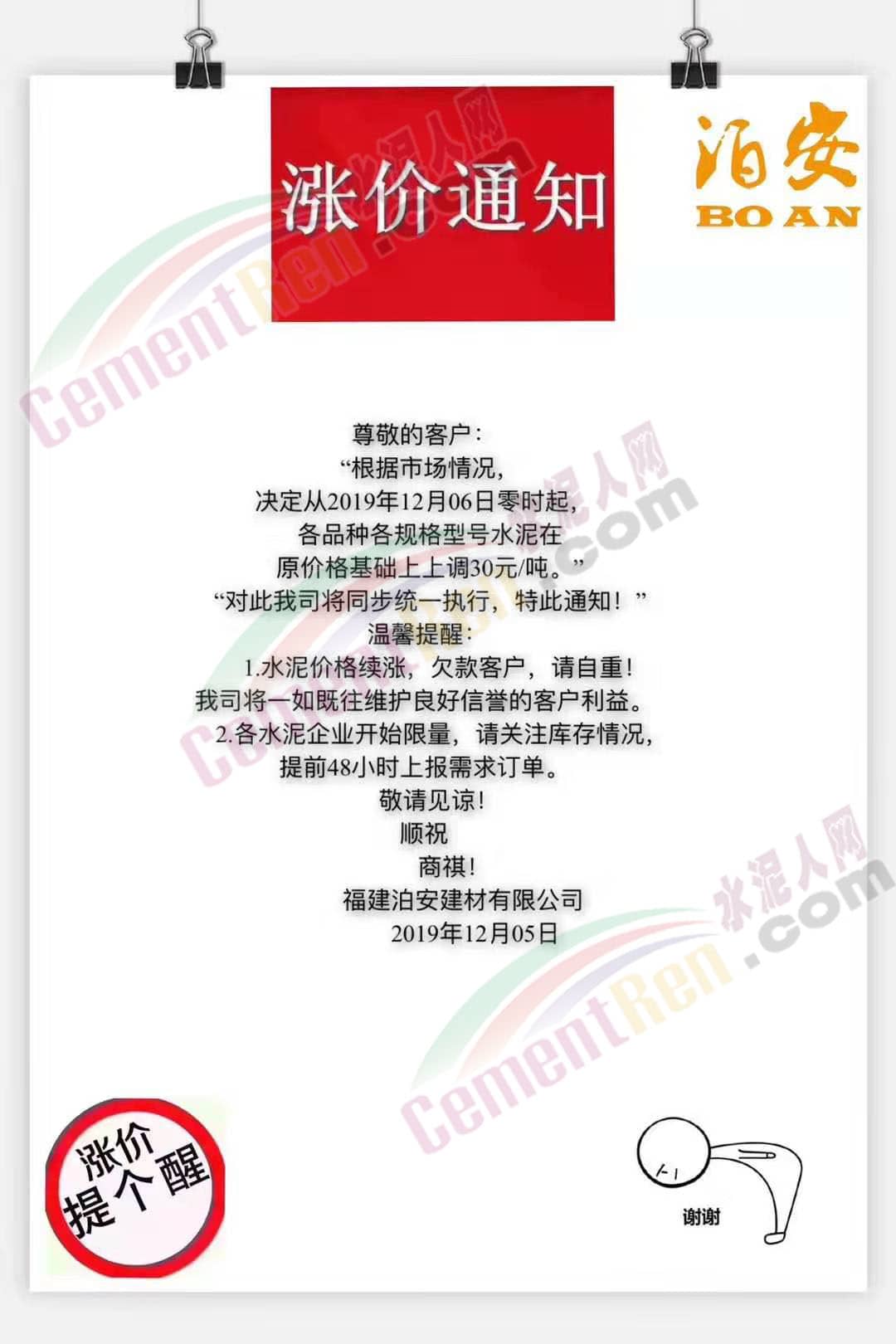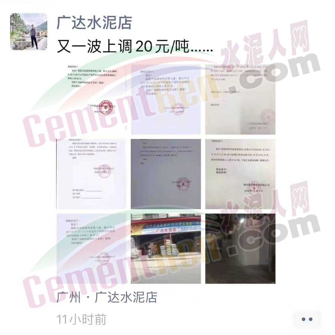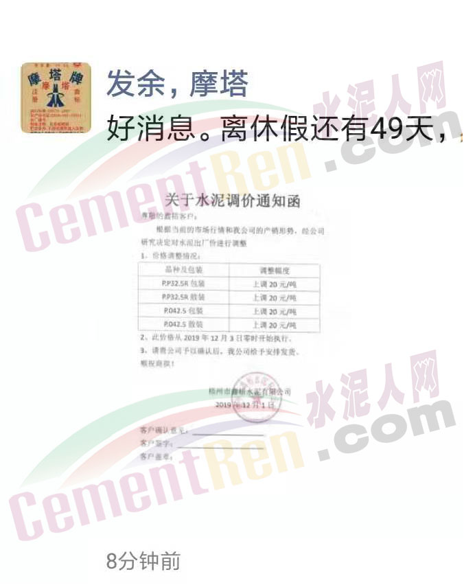 水泥企業(yè)漲價(jià)通知