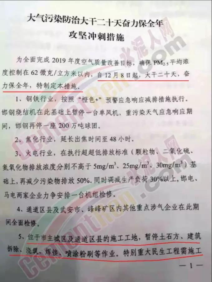 河北一地級市出臺一消息,為了保證2019年的空氣質(zhì)量改善目標,決定大干二十天,從12月8日,全面試行限產(chǎn)停產(chǎn)政策。